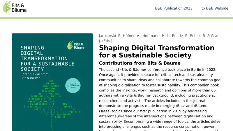 Shaping Digital Transformation for a Sustainable Society. Contributions from Bits & Bäume. -