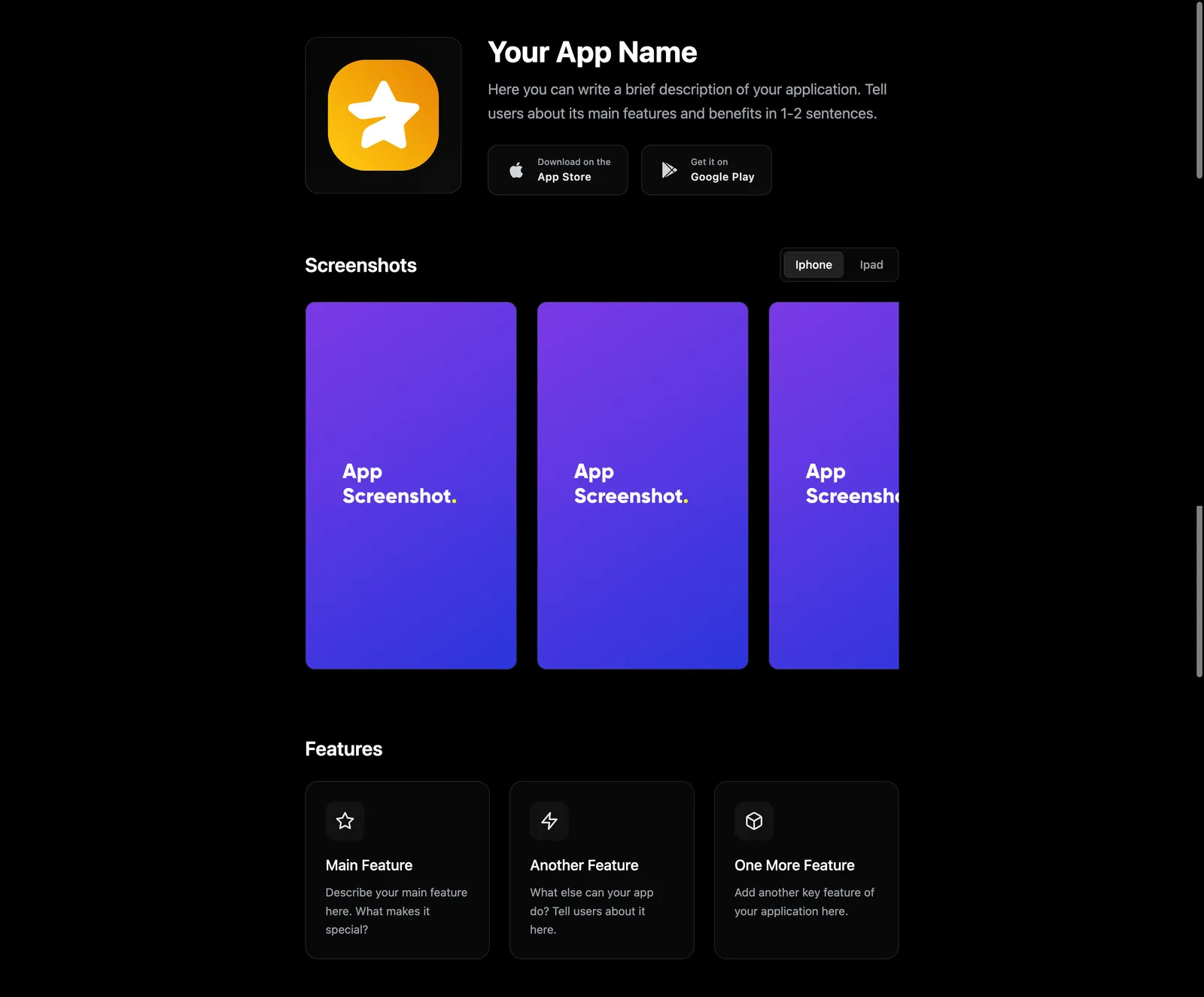 A sleek and modern mobile landing page for the app, designed for a seamless user experience. Built with responsive design and optimized for performance.